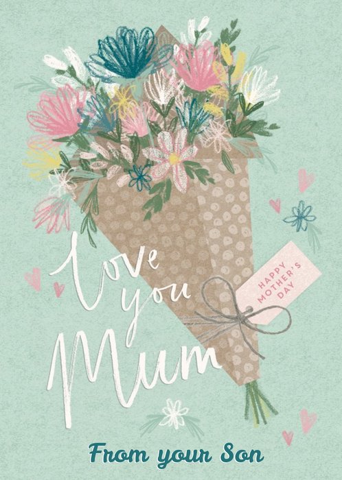 Illustrated Flower Bouquet Love You Mum From Your Son Mother's Day Card