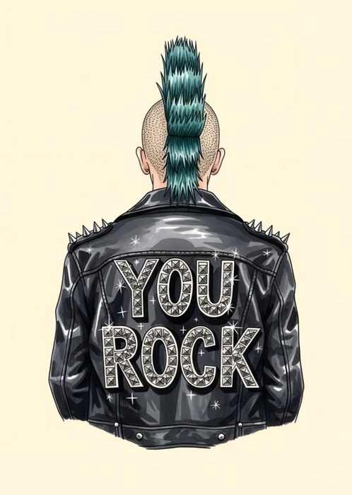 Illustrated Male Punk Leather Jacket You Rock Card