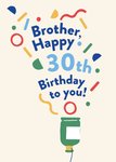 Illustrated Modern Party Popper Design Brother Happy 30th Birthday To You Card