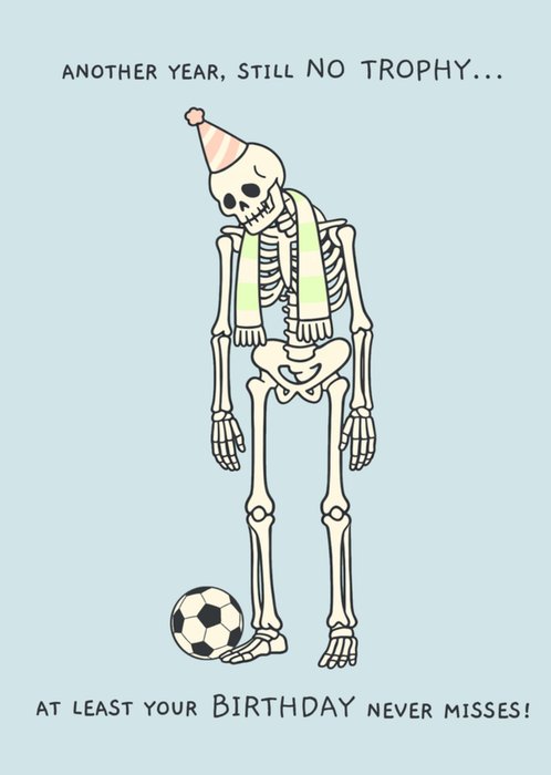 Illustrated Skeleton Football Fan Another Year Still No Trophy Birthday Card