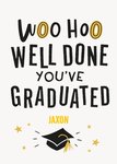 Text reads: Woo Hoo Well Done You've Graduated Jaxon.