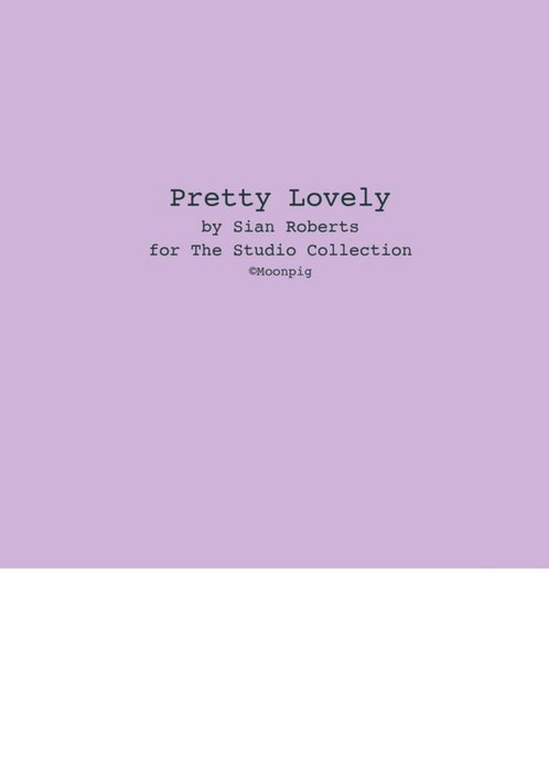 The rear of the card has a pink background with the Pretty Lovely and Moonpig logos.