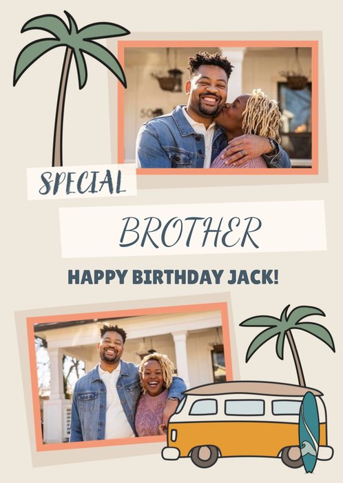 Illustration Of A Campervan And Palms Trees Brother's Photo Upload Birthday Card