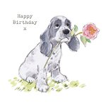Illustration Of A Cute Cocker Spaniel With A Rose Birthday Card