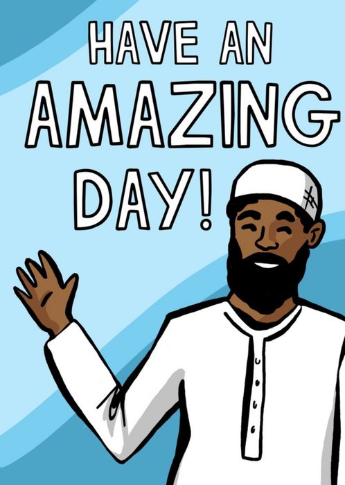 Illustration Of A Muslim Man Smiling And Waving Have An Amazing Day Card