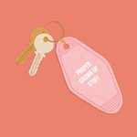 Front of card: New Home Card Illustration of a set of keys and on an orange background. Text reads: "Proper grown up stuff". All text can be personalised!