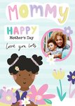Illustration of Girl Holding Flowers Photo Upload Mommy Mother's Day Card