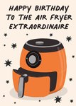Front of card: Air Fryer Extraordinaire! Birthday Card Illustration of the popular air fryer. Text reads: "Happy birthday to the air fryer extraordinaire".