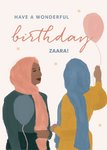 Illustration Of Two Ladies Wearing Headresses And Holding Balloons Have A Wondeful Birthday Card