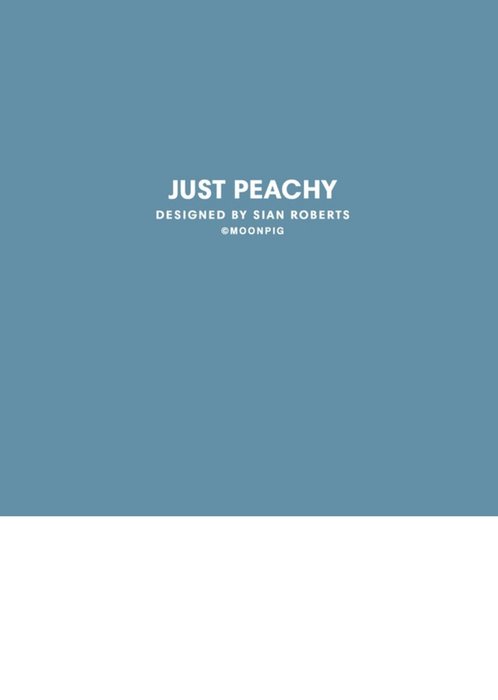 Rear of the card has a blue background with the Just Peachy and Moonpig logos