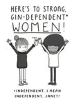 "Here's to strong gin-dependent* women! * Independent. I mean independent, Janet!". 'Independent. I mean independent, Janet!' can be personalised!