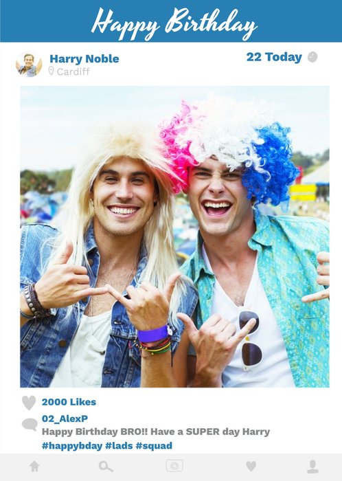 Instagram Style Blue Photo Upload Birthday Card