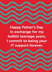 "Happy Father's Day. In exchange for my hellish teenage years, I commit to being your IT support forever."