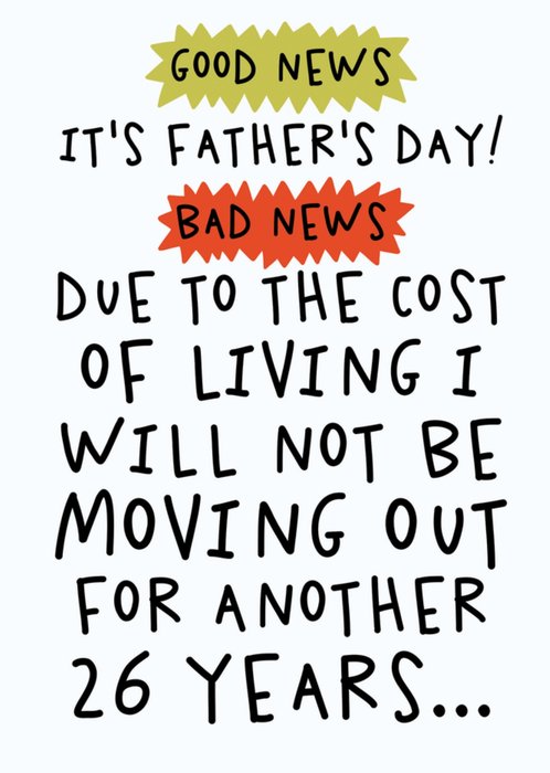 "Good News, it's Father's Day! Bad news, due to the cost of living I will not be moving out for another 26 years..."