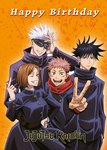 Featuring an illustration of four Jujutsu Kaisen characters.