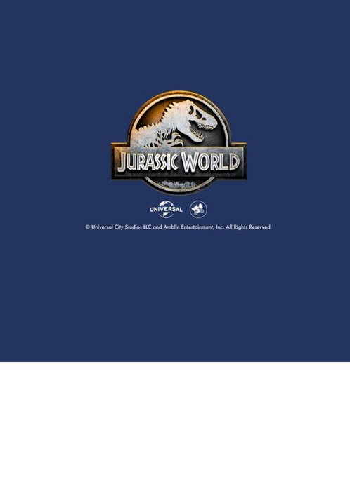 Front of card: Jurassic World Dominion Velociraptor Birthday Card Featuring a Velociraptor surrounded by fire and warning signs. Text reads: Hope you have a totally roarsome birthday!".