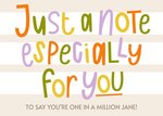 "Just a note especially for you to say you're one in a million Jane!". 'to say you're one in a million Jane!' can be personalised!