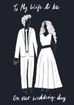 Katy Welsh Illustration of Married Couple in Black and White To My Wife To Be On Our Wedding Day Car