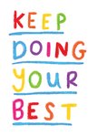 A colorful and uplifting postcard with the message "Keep doing your best" in rainbow-coloured letters on a white background.