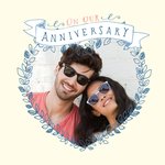 Lemon And Blue Heart Frame Personalised Happy Anniversary Card