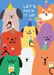 Let's F It Up Funny Illustrated Party Dogs Birthday Card