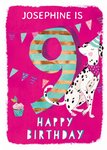 Ling design - Kids Happy Birthday card - Dalmatian dog - 9 Today