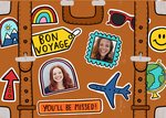Illustration of a suitcase with holiday stickers and two photo uploads.