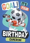 "Goal it's your birthday Cameron!". 'Cameron!' can be personalised!