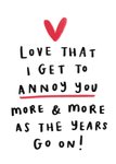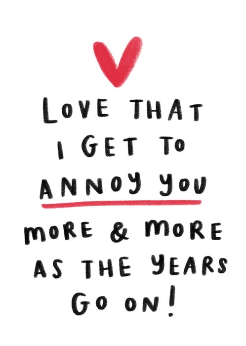 Love That I Get To Annoy You Heart Typographic Anniversary Card