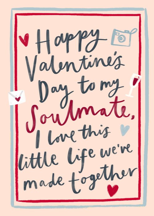 Featuring an illustration of Minnie & Mickey Mouse on the right-hand side of the card holding hands and kissing surrounded by colourful bold, bubble-effect typography on a cream background with hearts and flowers.