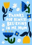 Lucy Maggie Thanks For Always Believing In Me Mum Illustrated Flowers Typography Mother's Day Card