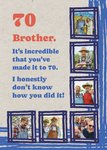 "70 Brother. It's incredible that you've made it to 70. That was a lie. I honestly don't know how you did it!".