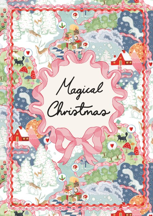 This classic Cath Kidston Christmas design features an elegant festive pattern with a central ribbon frame surrounding a Christmas message, creating a winter-inspired vintage design.