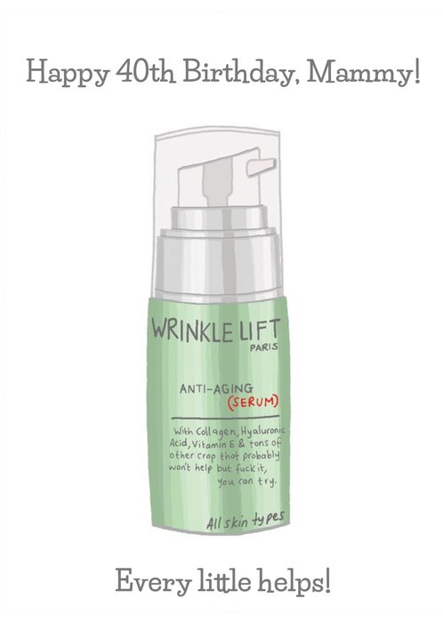 Mammy Wrinkle Cream Arty Modern Funny Trendy Old Age Happy 40th Birthday Card