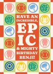 "Have an incredible, epic mighty birthday Benji!". 'Benji!' can be personalised!