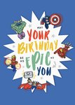 Featuring an illustration of Hulk, Captain America, Iron Man, Thor and Captain Marvel.