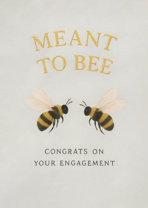 A cute design featuring two illustrated bees facing each other with textured gold lettering above, on a soft grey background.