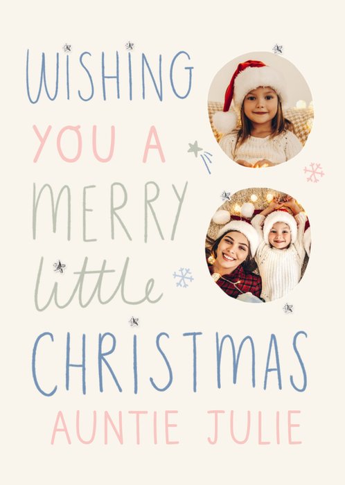 "Wishing you a merry little Christmas Auntie Julie." "Auntie Julie" is editable.