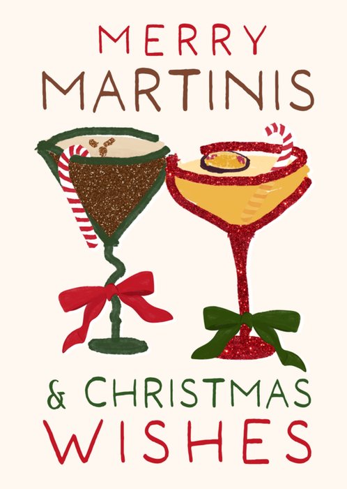 Featuring two martini cocktails with candy cane decorations and bows, on a cream background.