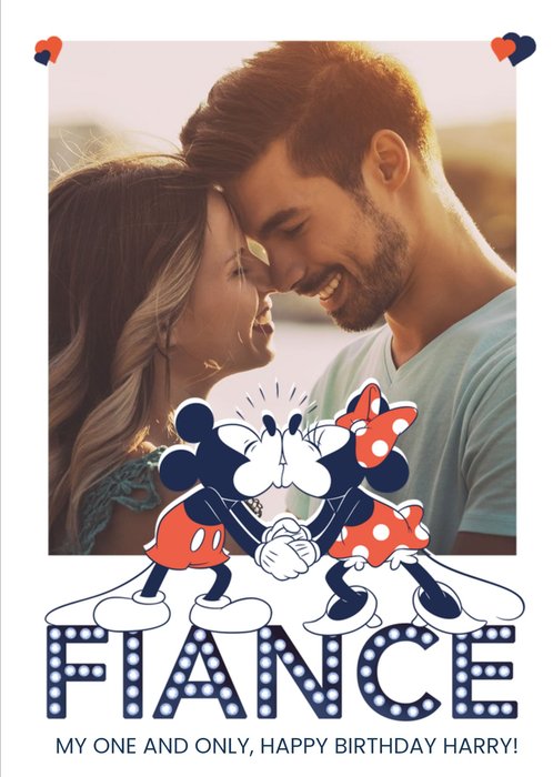 Mickey & Minnie Mouse Fiance Photo Upload Birthday Card