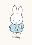 Featuring an illustration of Miffy wearing a pastel-blue jumper with a big green number one on the front.