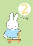 Featuring an illustration of Miffy riding a skateboard on a soft green background.