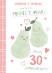 "Grnadma (deliberately misspelt) & Grandad you're the perfect pear! Happy 30th Anniversary!." Editable name & number text.