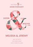 "On your 5th anniversary sister & brother in-law. Melissa & Jeremy. May you both have many more happy years to come." Editable names & 5th text.