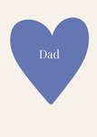 Featuring a large blue heart centred on a cream background with the word "Dad" in white typography.