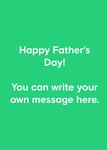 Front of card: This greeting card design features a green background with a central white text block reading “Happy Father's Day! You can write your own message here.” offering a customisable message space for personalisation.