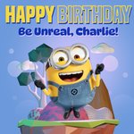 "Happy birthday be unreal, Charlie". 'Be unreal, Charlie' can be personalised!