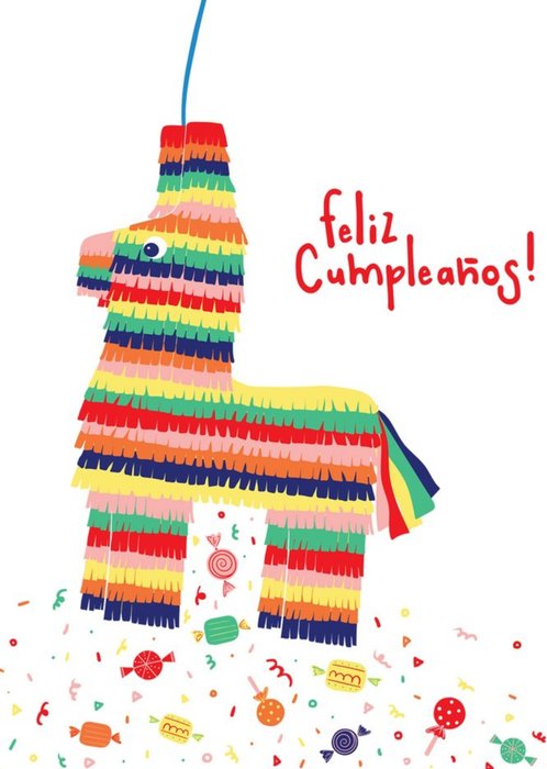 Modern Illustrated Pinata Feliz Cumpleanos Birthday Card