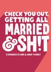 Modern Typographic Check You Out Getting All Married Wedding Card