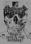 Front of card: Features a faded image of skull against a grey background. The MTV and Headbangers Ball logo at the top of the card. Text reads: "Have A Rock And Roll Birthday!".
